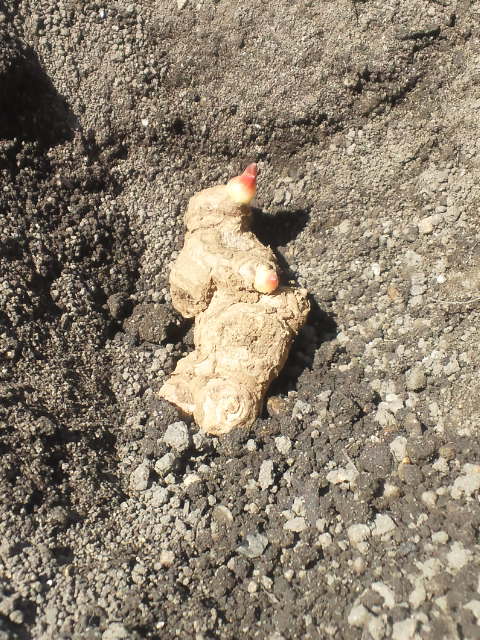余った種芋と種ショウガは、発芽して来なかった保険に、