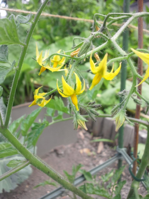 トマトの花も次々開花。