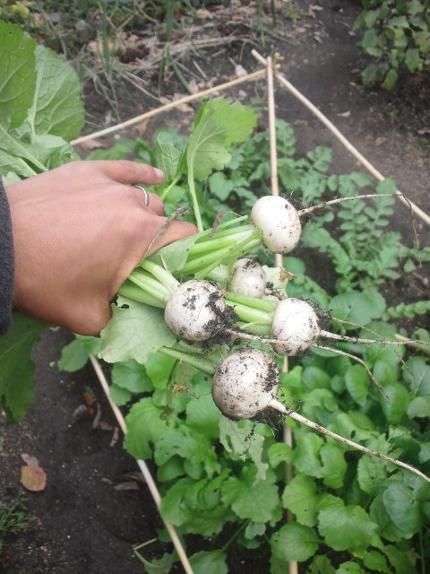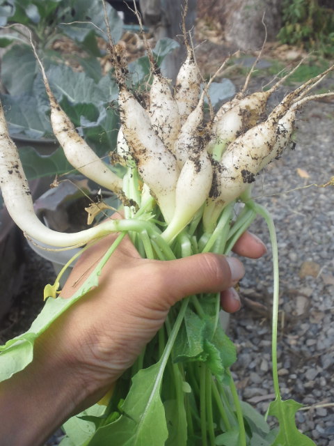 小カブはお吸い物にし、カブの葉と20日大根は葉ごと細かく刻んで浅漬けに!