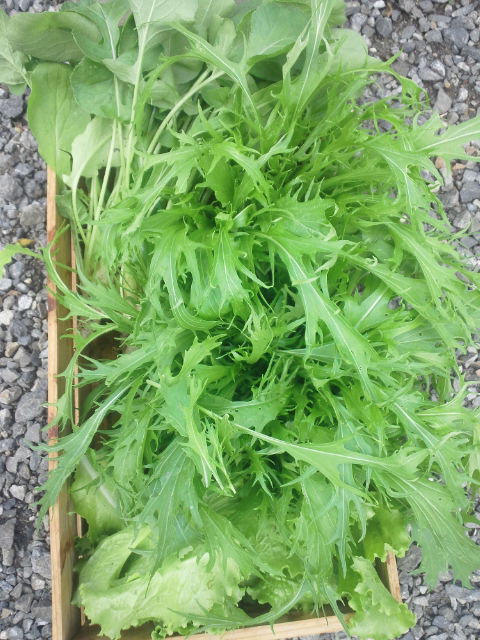 リーフレタスとミズナは、胡麻ドレッシングでシンプルなサラダで頂きました。