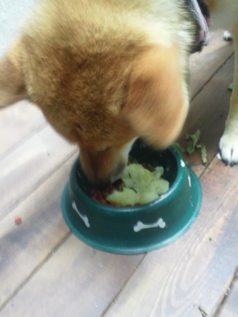 我が家で最初に新ジャガを食べるのは、柴犬さくら。