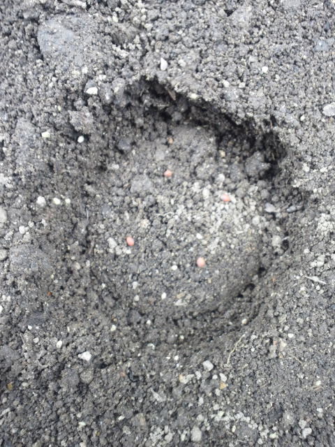 エンドウの種は、空豆に比べれば小さいですが、十分大きくまきやすいです。