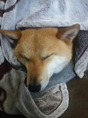 寒さが戻ったので、柴犬さくらは、家の中でスヤスヤ。