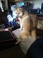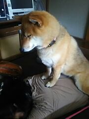 柴犬マッサージ改め、柴犬温熱療法でした。