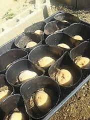 春ジャガは、種芋丸々ではなくて、半分にして植え付けます。