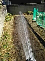 堆肥、牛ふん、石灰などを鋤き込みました。