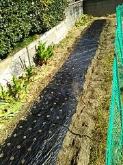最後に、雑草と野良猫対策として、マルチをかけて完成!