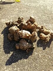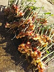 ちなみに、生姜って小さく割った種生姜を植えて栽培。