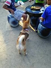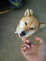 お手伝いは、してないけど、食べる気まんまんの柴犬さくら。