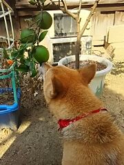 柑橘系には、興味ない柴犬さくらは、眺めるだけ。