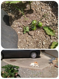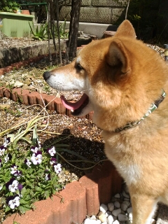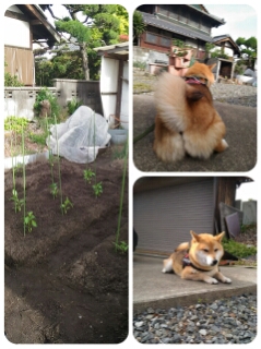 植え付けの間、ボーッと見物していた柴犬さくら。