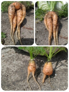 人参植える前に、土を振るうべきでした( ̄ー ̄)