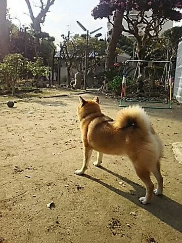 遠くに飛んでいくと、気持ちよいワンの柴犬さくらに、