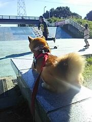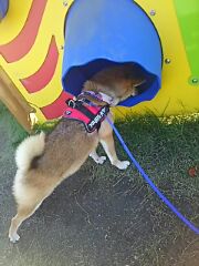 子供達が遊具で遊んでる間に、柴犬さくらも冒険。