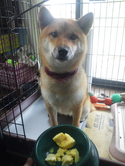 はなは、人間用の88円のバニラアイスを一口もらって大満足のようです(^_^;)