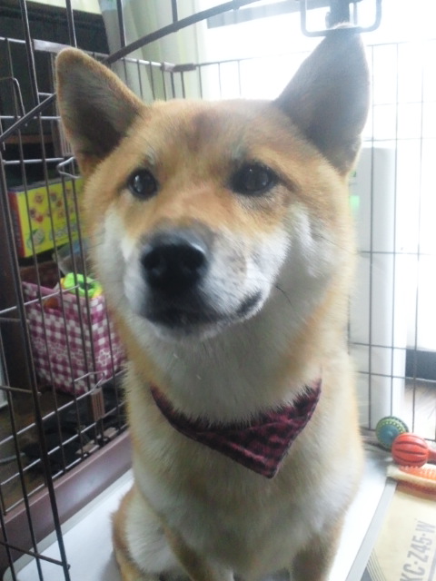 初めてなのにわかってるのか、真剣な眼差しの柴犬さくら。