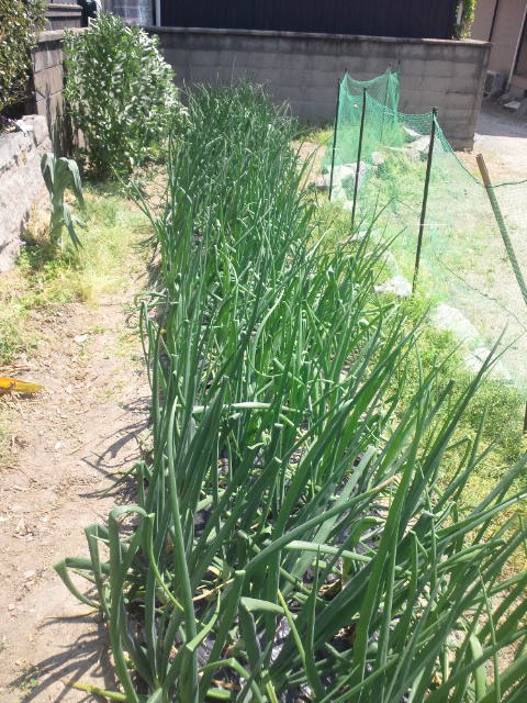 玉ねぎ畝の草抜きしました。