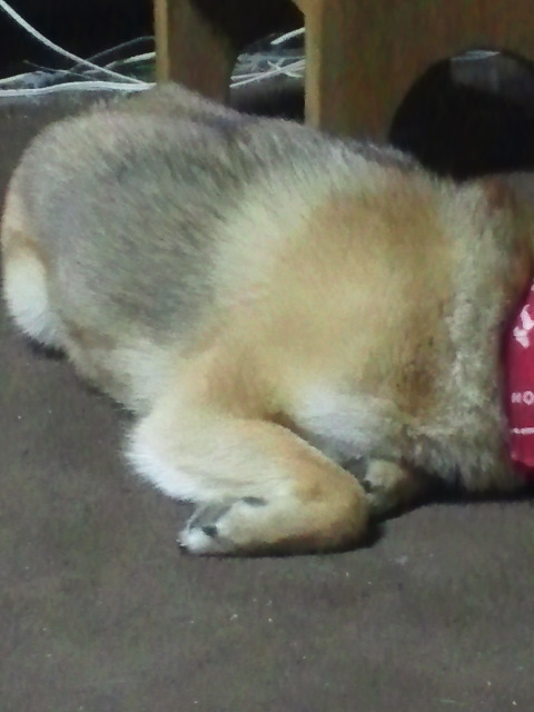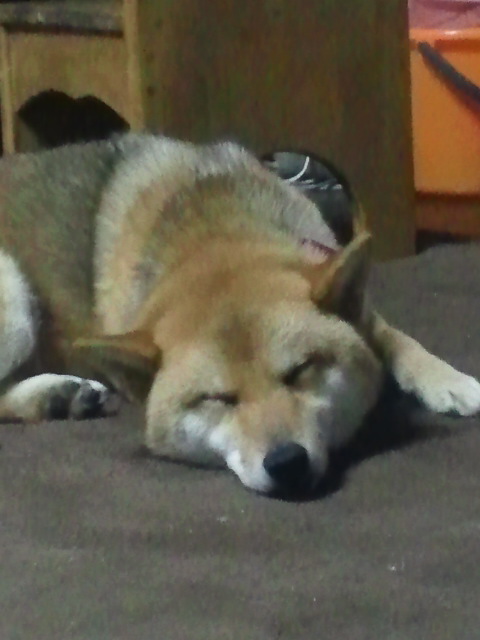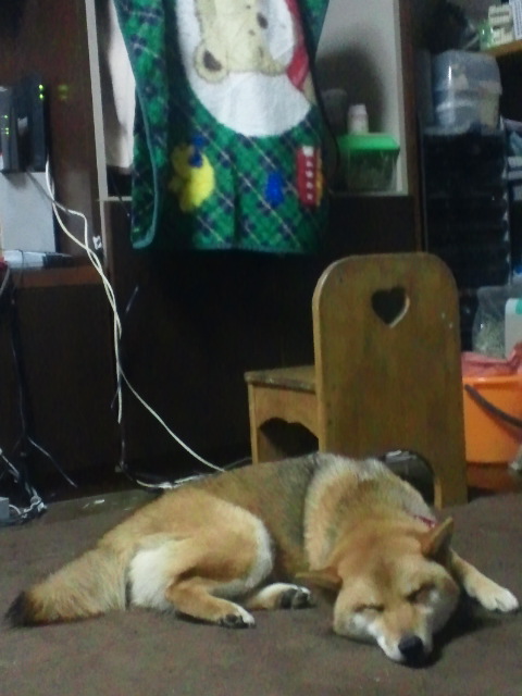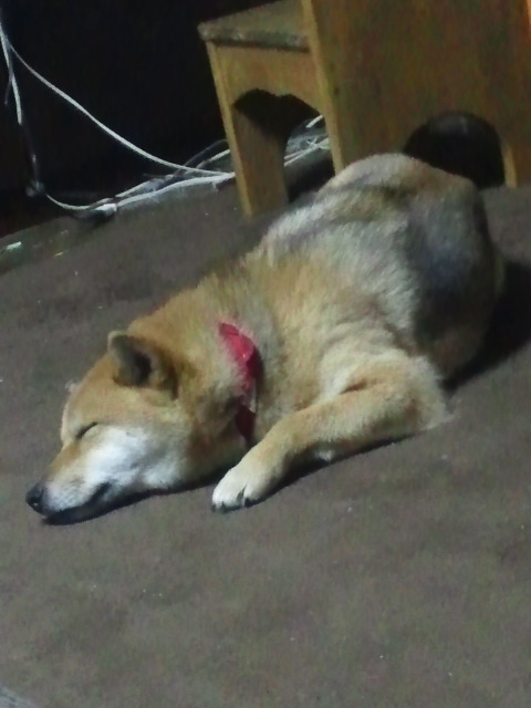 気にしてるのだか、気にして無いんだかスヤスヤ寝続ける柴犬さくら。