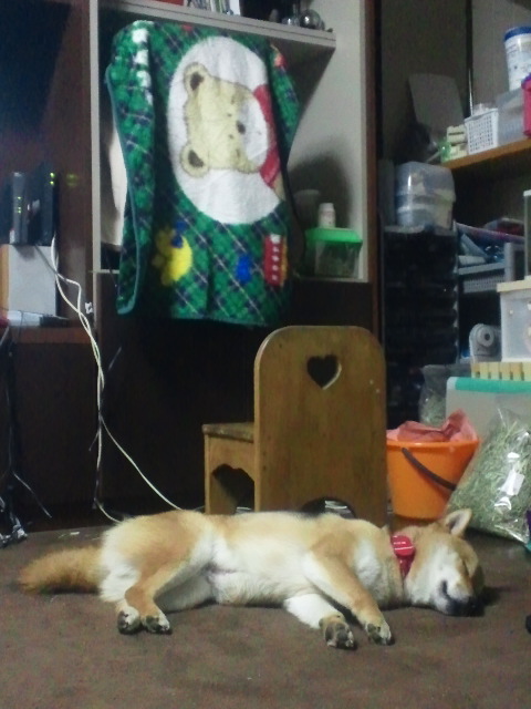 柴犬さくらもリビングで、パパが寝るまでスヤスヤお休み中。