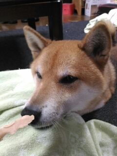 お召し上がり下さいなんだワンの柴犬さくらに、