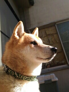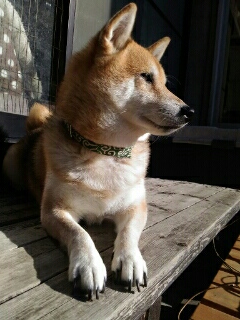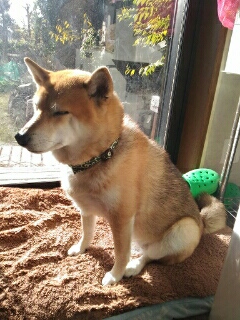 コタツから出て日向に移動した柴犬さくら、