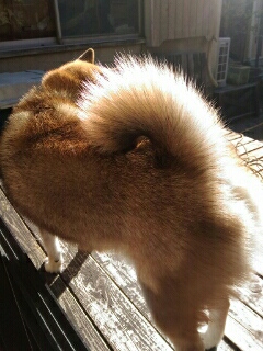 お日様浴びて、尻尾が輝いているみたい。