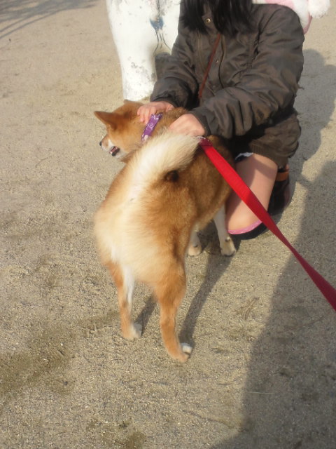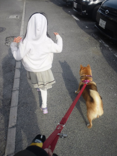友達と遊ぶ娘にお供して、公園に向かう柴犬さくら。