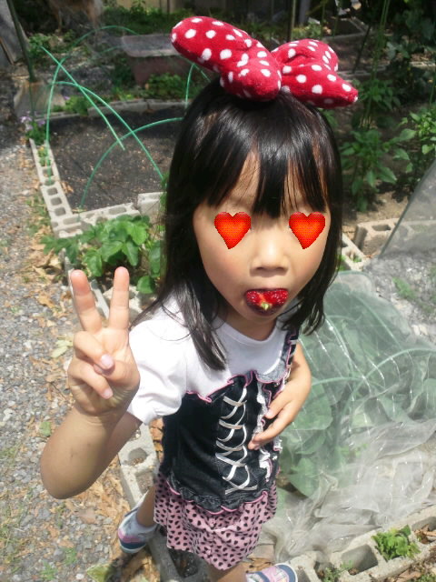 娘ちゃん、いちごが熟すまで待ちきれないんでしょうね(笑)