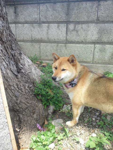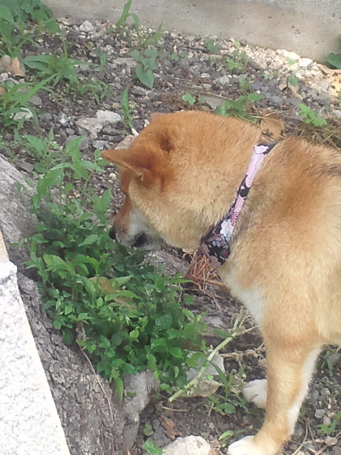 そんなイチゴには目もくれずに、木の新芽をむさぼる柴犬さくら