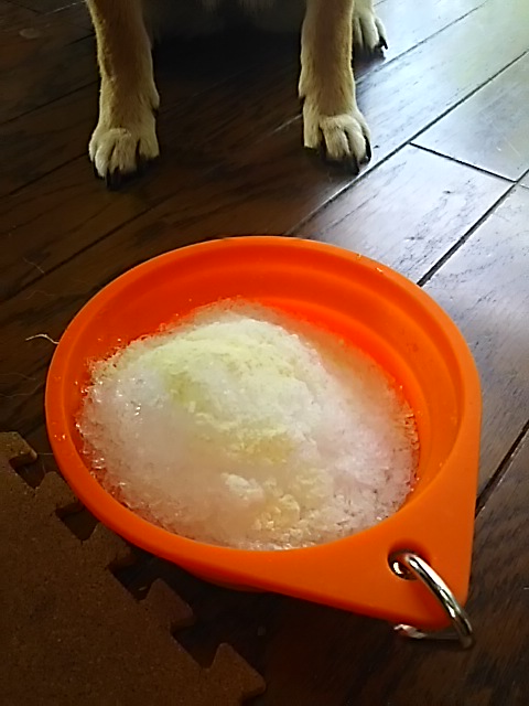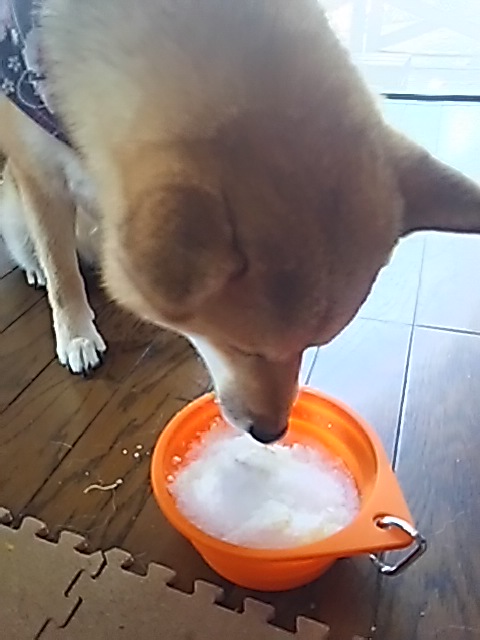 本犬、氷もヤギミルクも大好きですからね。