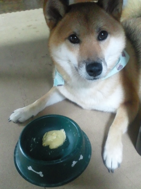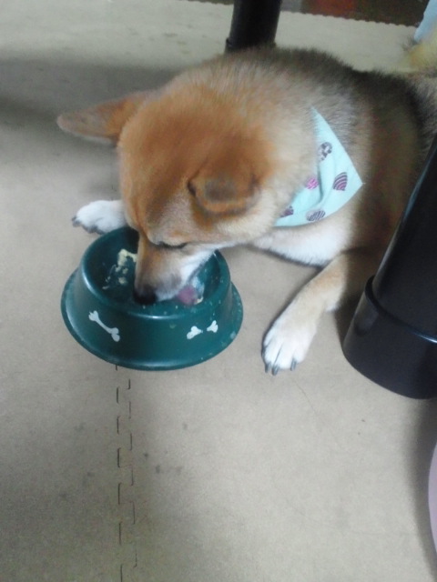 かぼちゃ大好き柴犬さくら、察し良すぎで、冷やす間からソワソワ