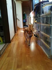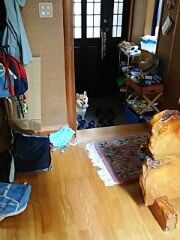 家に入ると、柴犬さくらは、お玄関で待機です。