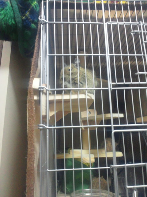 右に左に、上に下にと飛び回るデグーのもみじを、一生懸命目で追いかけてます。