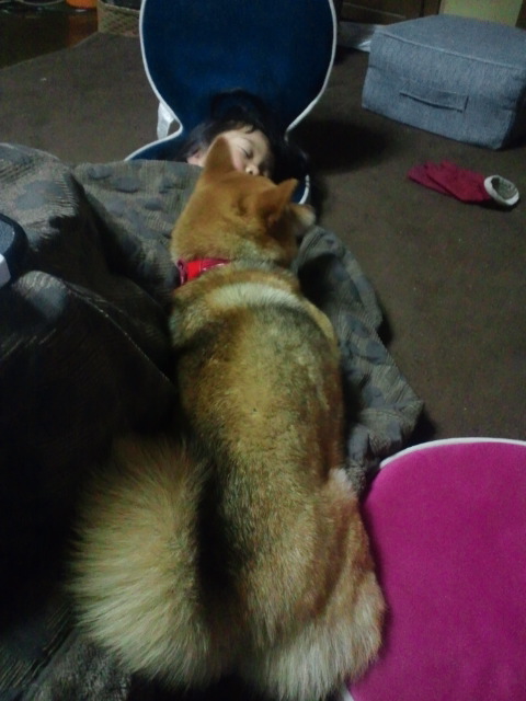どんな格好でも、添い寝が出来るということは、幸せの証でしょうね!