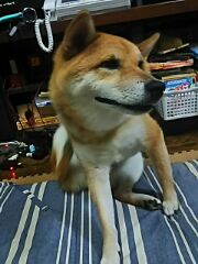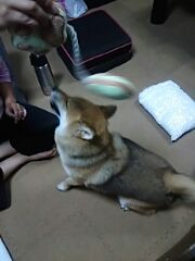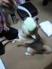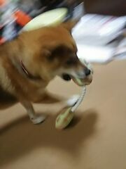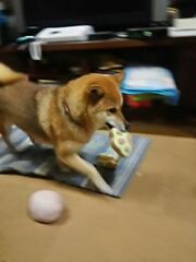 珍しく玩具で遊ぶ気になった柴犬さくら。