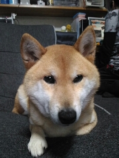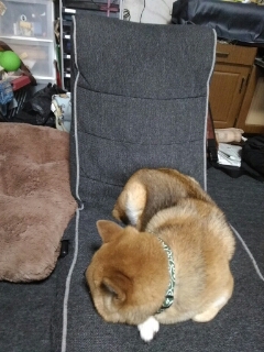 さくらちゃん、専用のフカフカクッションがあるのに座椅子を占領ですか? ちょっと寝ぼけた顔がかわいいですね