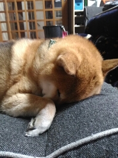 暖かかった昼間、がっつり寝ていた柴犬さくら