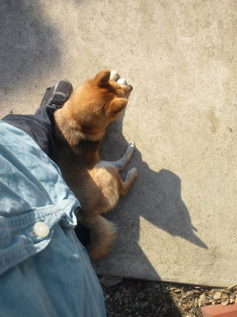 足の上にお尻を乗っけてゴロン…f^_^;