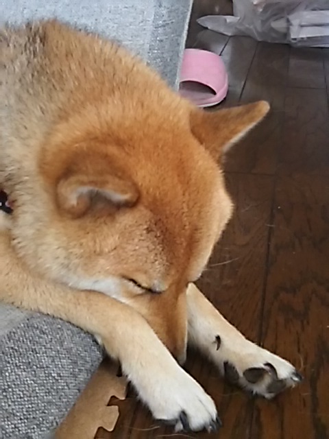 マズルを手で挟んで、爆眠してました。