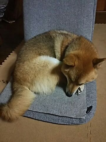 涼しくなって来て、丸まる機会が増えた柴犬さくら
