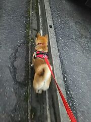 わんこって端っこ歩くの好きですよね。でも我が家は4頭立てだと、なかなか思う場所を歩けてないのかもしれません。それぞれ得手不得手があって、マンホール苦手なコ、縁石大好きで平均台みたいに歩くコ、グレーチングは飛ぶ超える派のコ、マーキングのため、極端に端っこ寄りのコetc…さくらちゃんは溝が好きなのかな。我が家に溝好きはいないかな。
