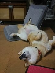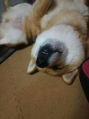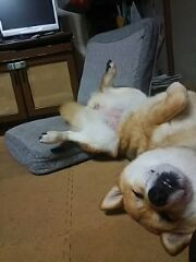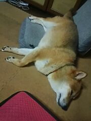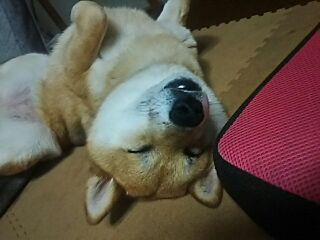 お気に入りのママの座椅子で寝ていた柴犬さくら。