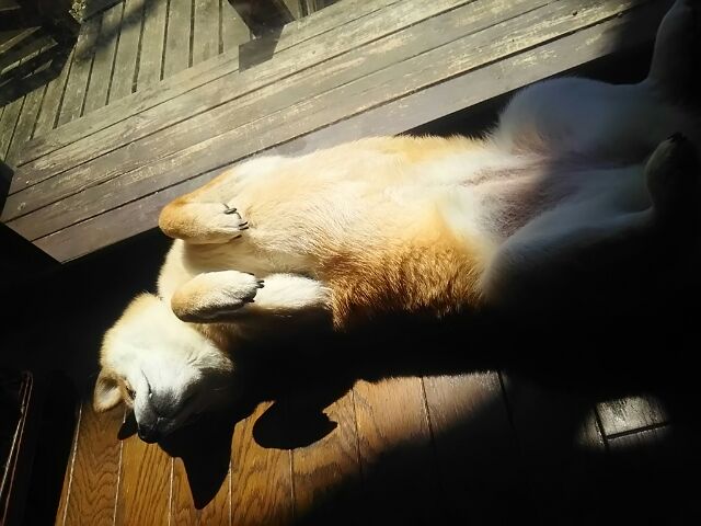 さくらは、暖かくなるとお腹をクールダウン始めます(笑)