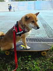 がんばってスケボー犬として有名になってテレビ出て!(^.^)