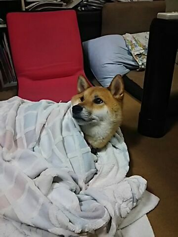 コタツに入ったりしてるから、タオルケットかけられるくらい、平気なんだと思います。