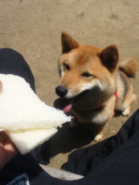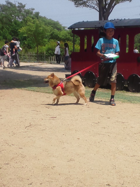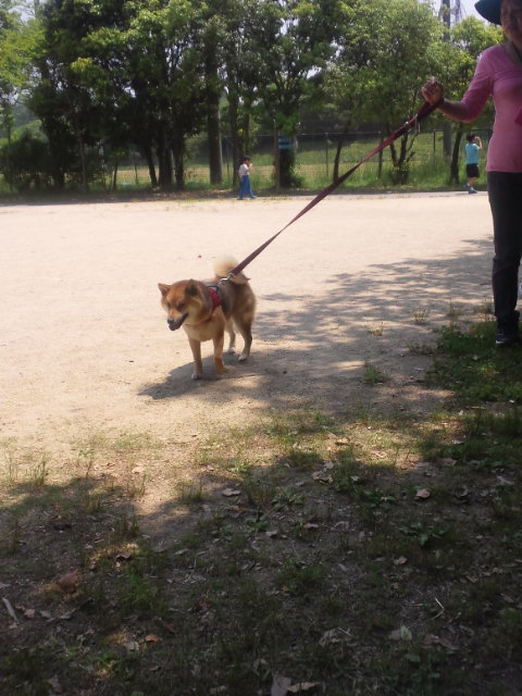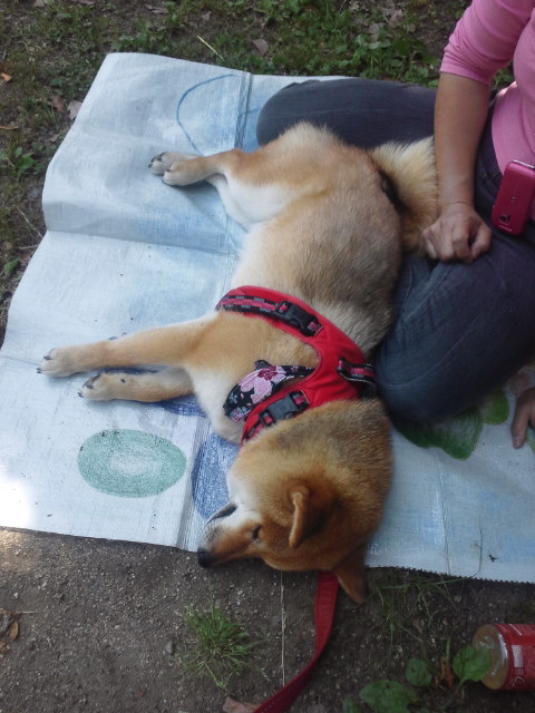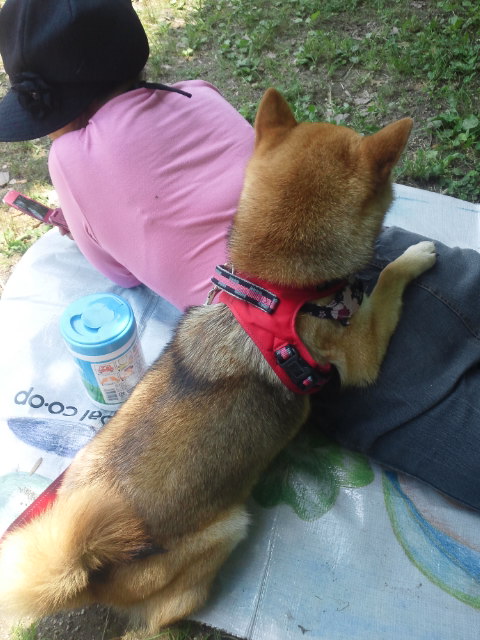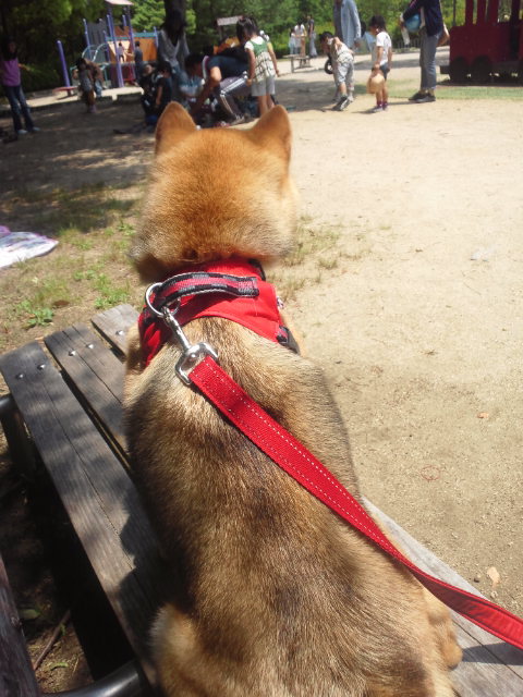 沢山の人が遊んでるのを眺めてた柴犬さくら。