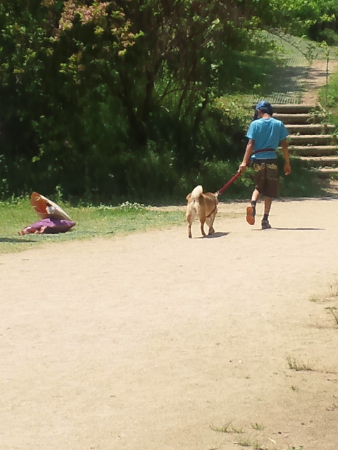 暑いから、木陰のシートは冷たくて気持ち良いらしい。