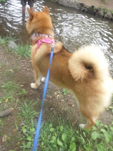 子供達は、ず~っと川に入ってましたが、柴犬さくらは陸上も満喫。
