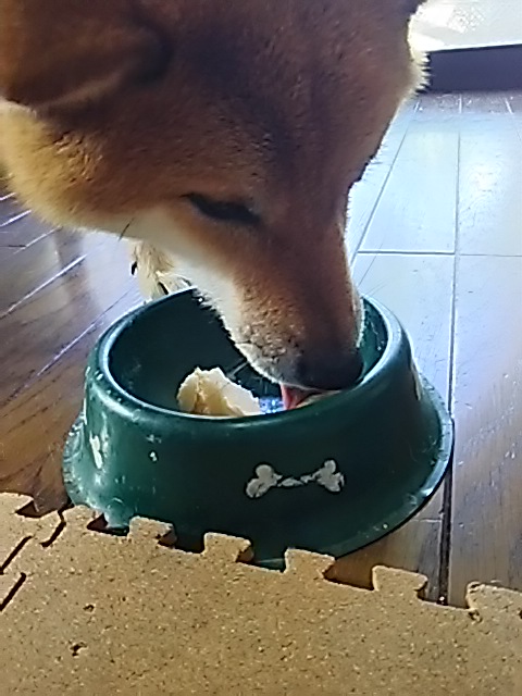 暑い夏、アイス染み入る柴犬さくら