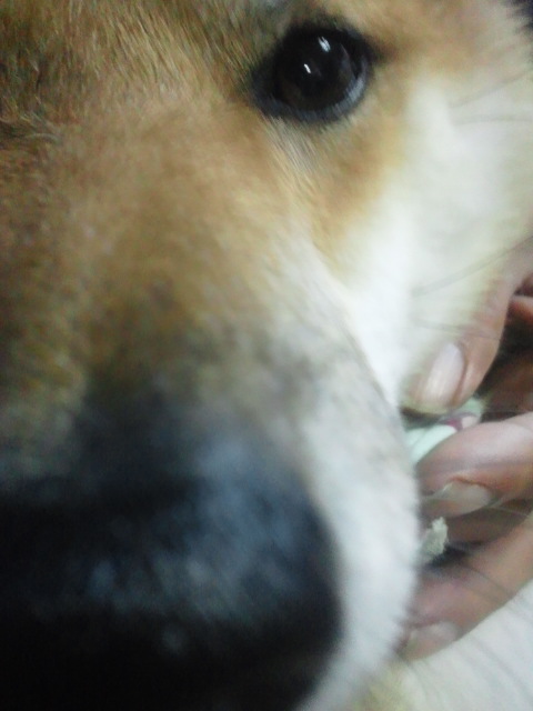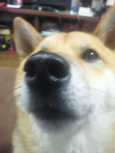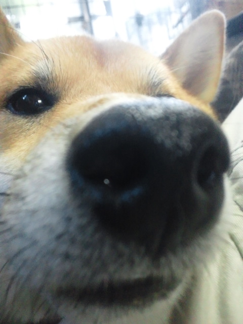 柴犬さくらの顔のドアップを狙うと…